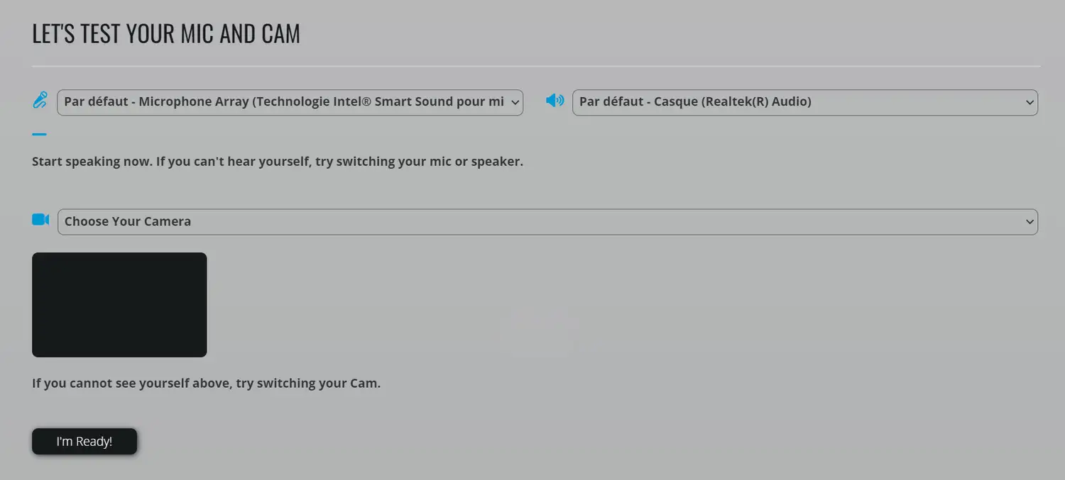 (Vous pourrez changer de micro et de caméra ultérieurement).
