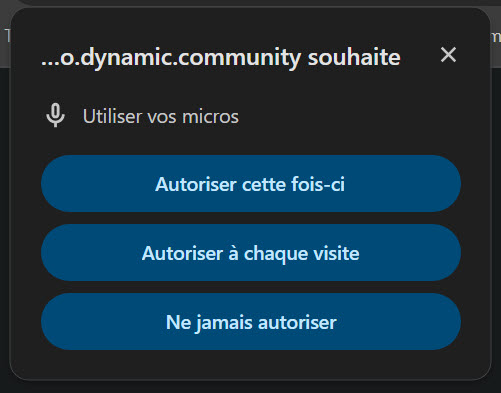 "Autoriser cette fois-ci" = Vous autorisez le micro et cette fenêtre apparaîtra à nouveau lors de votre prochaine connexion.