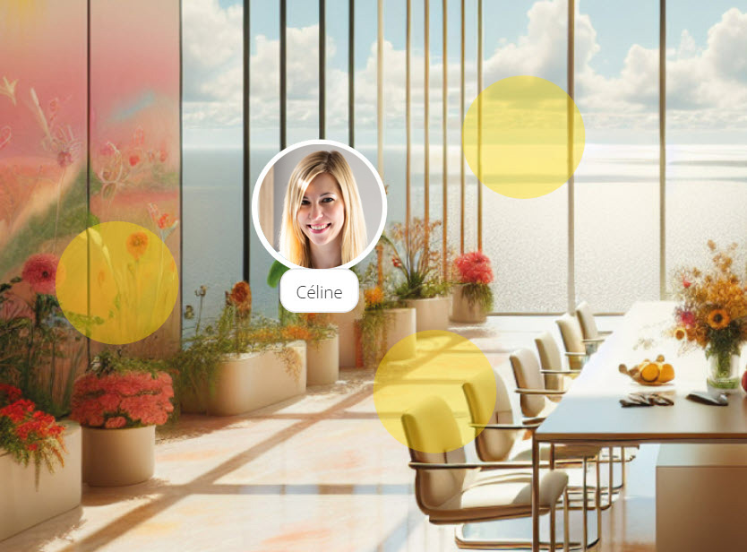Vous pouvez vous déplacer à tout moment à l'intérieur de la Salle en cliquant sur un cercle vide.
